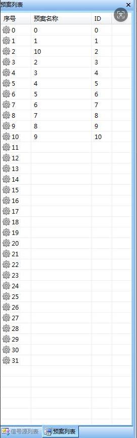 “123456789”:为设置的预案序号,按下打开相应的预案。