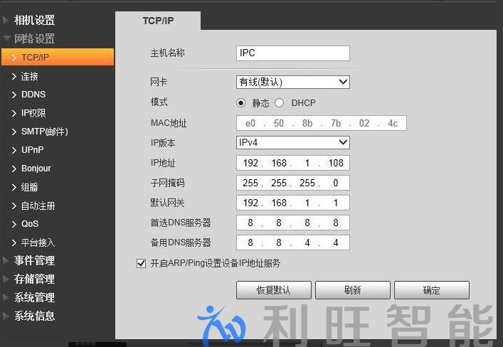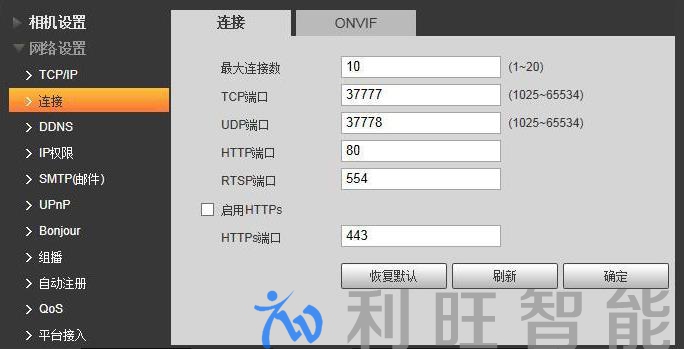 设置大华IPC的用户名和密码,同时设置IP地址,ONVIF开启,HTTP端口默认设置为80,