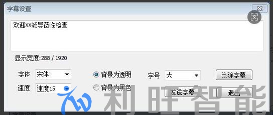从左到右滚动速度,以及背景颜色和字体大小。按需要设置,设置好后,点击发送字幕,等