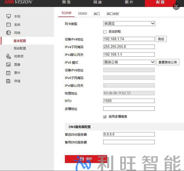 设置海康IPC的用户名和密码,同时设置IP地址,HTTP端口默认80,服务端口默认8000