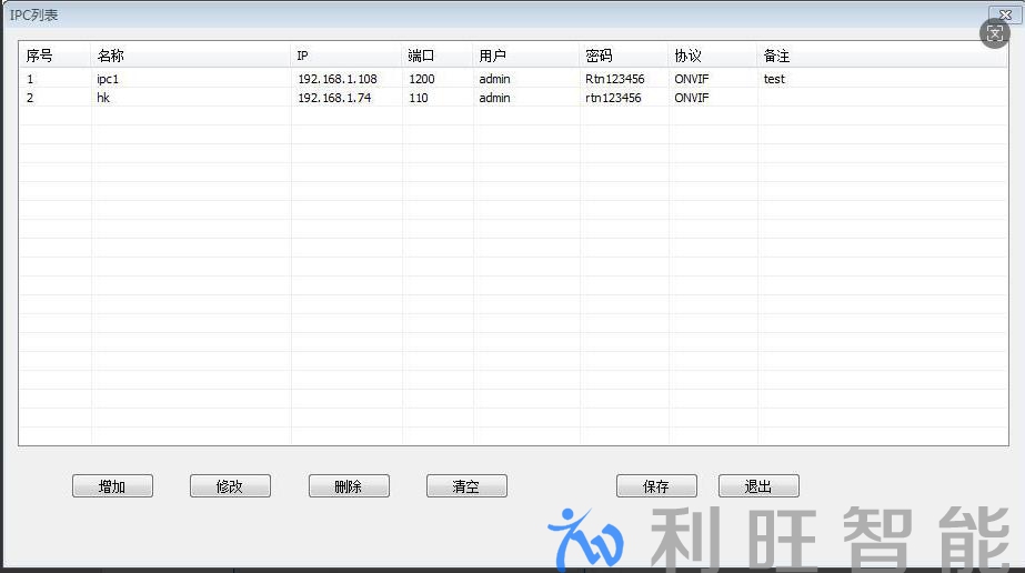 点击IPC设置按钮,跳出IPC列表对话框,点击增加,添加IPC,