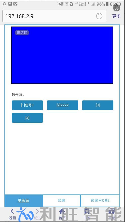 也就是在浏览器中的地址栏中,输入 http://192.168.2.9,开始操作拼接处理器。移动设备也可以连入其他热点,只要该热点与设备通过网线连接着。