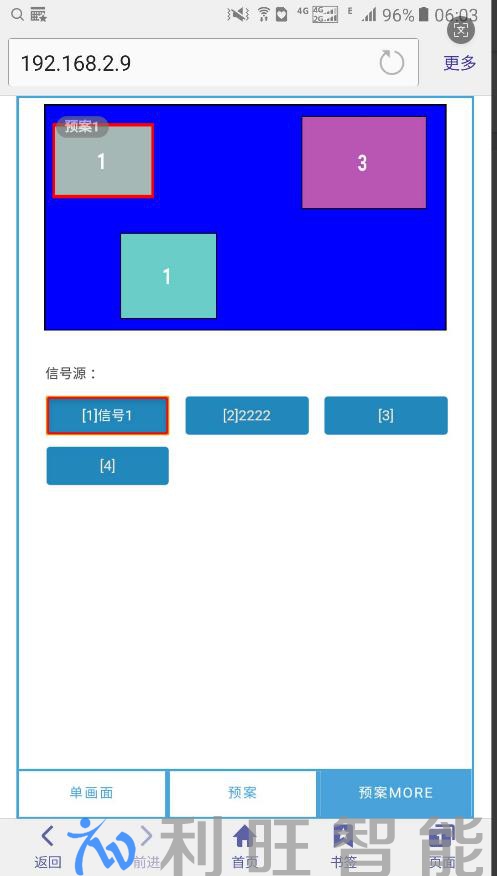 3)预案MORE:在指定的预案中,选择任意一个窗口,再选择信号源,可以切换信号源显示。